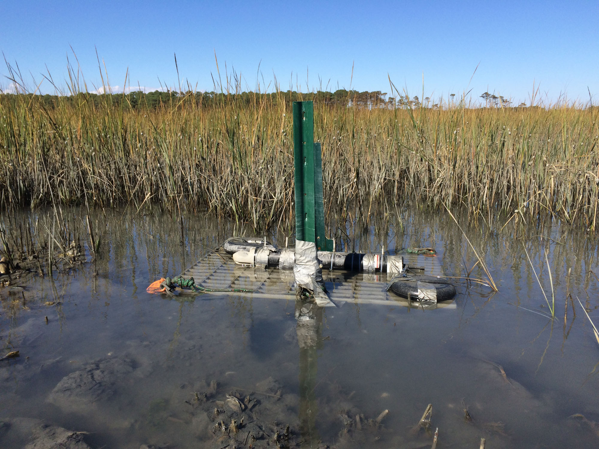 The plants provide the instruments with some protection from sediment and detritus that moves through the marsh. Still, the lack of moving parts offers peace of mind that the instruments won’t become blocked or damaged during a long deployment or a particularly aggressive storm surge.