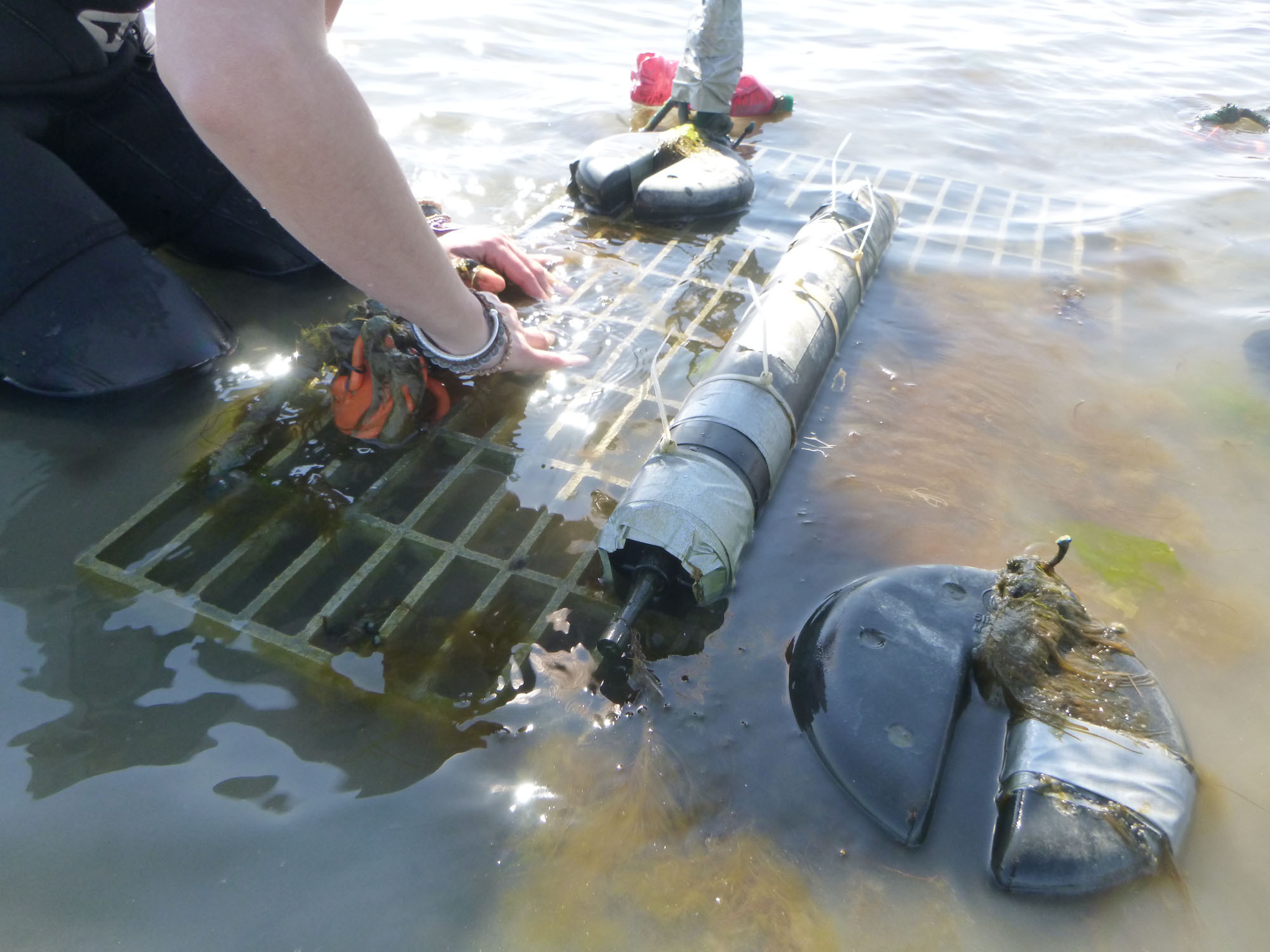 Weighing in at less than 3.5 kg, the instruments’ small, lightweight nature makes them easily maneuverable through challenging terrain. Once at their deployment site, Ferreira’s team then mounts the profilers onto frames, which are then placed on the floor of the marsh.