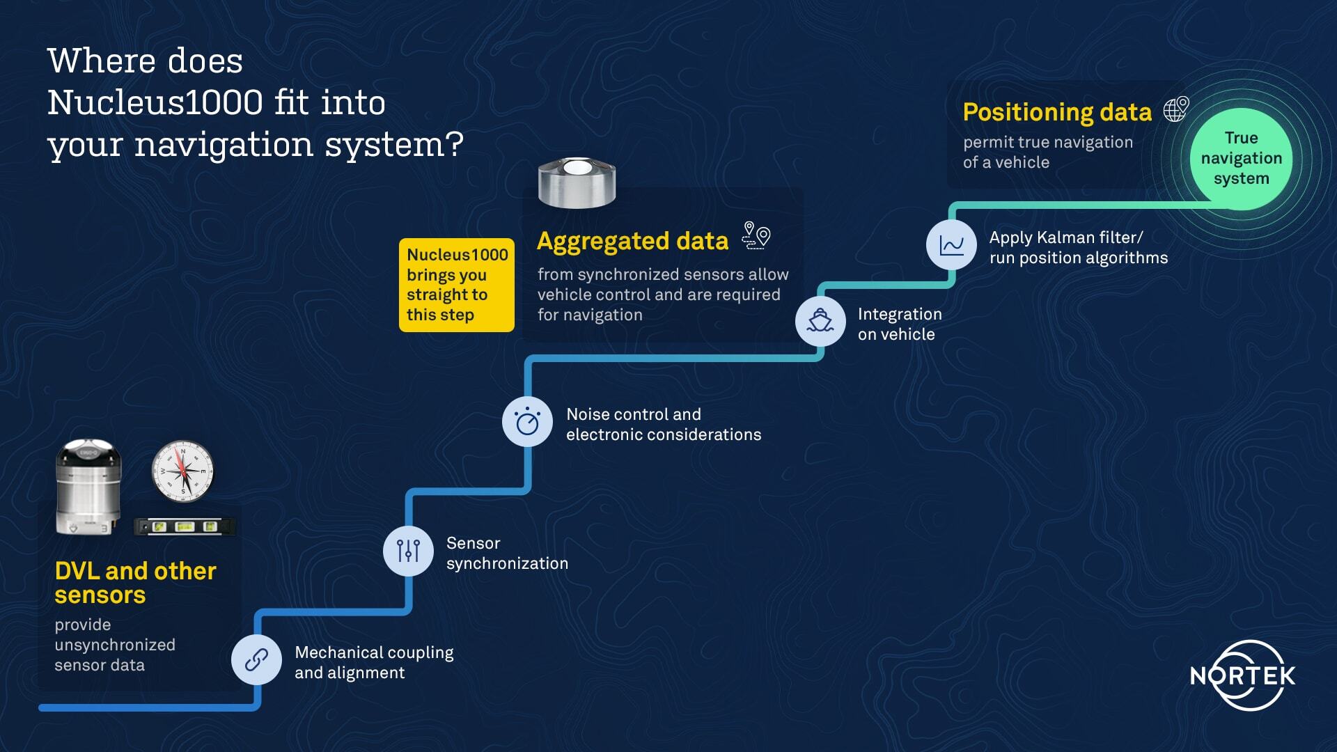 Nortek's Nucleus1000 achieves optimal navigation performance by managing power, interference, synchronization, alignment and data flow. Having all these in one compact package simplifies vehicle integration and extends capabilities.