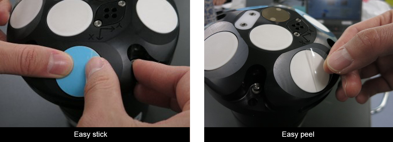The Nitto patches are simple and clean to apply. They are self-adhesive and precisely cut to fit your ADCP transducer. All you need to do is to stick them on using your fingers.